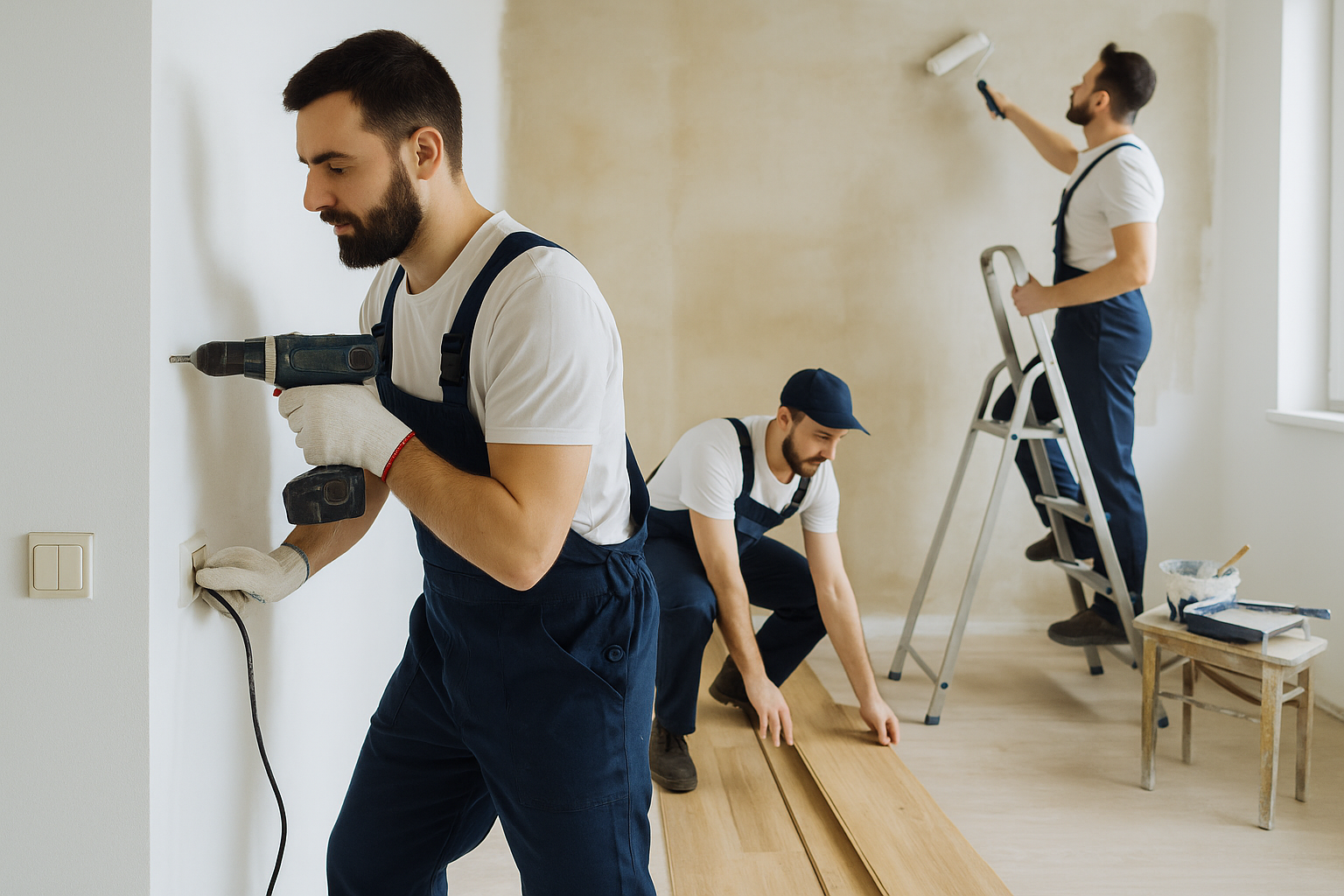 Wir übernehmen alle klassischen Renovierungsleistungen im Innenbereich – von Maler- und Tapezierarbeiten über Bodenverlegung bis hin zu Trockenbau, Fliesenarbeiten und der Modernisierung einzelner Räume oder kompletter Objekte. Dabei kümmern wir uns auch um Vorarbeiten wie Entkernung oder kleine Reparaturen.